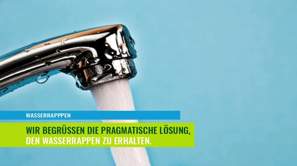 Die Stadt hat durch einen Zuschlag von 2 Rappen pro 1’000 Liter Trinkwasser Wasserversorgungsprojekte in Ländern mit unzureichender Wasserversorgung unterstützt. Diese Abgabe wurde gerichtlich unterbunden. Nun wurde mit einem freiwilligen Wasserrappen eine gute, prgamatische Lösung gefunden.