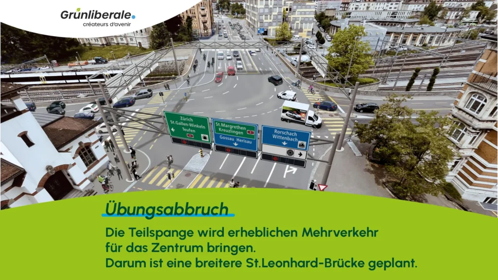 Der Autobahnanschluss im Güterbahnhof wird die Stadt entlasten. Diese Aussage begründen Bund, Kanton und Stadt mit errechneten Verkehrsmodellen. Tatsächlich wird er aber Mehrverkehr ins Stadtzentrum bringen. Dies wird indirekt dadurch zugegeben, dass gemäss Testplanung die St.Leonhard-Brücke verbreitert werden müsste. Bis heute werden die erwähnten Verkehrsmodelle der Öffentlichkeit vorenthalten.