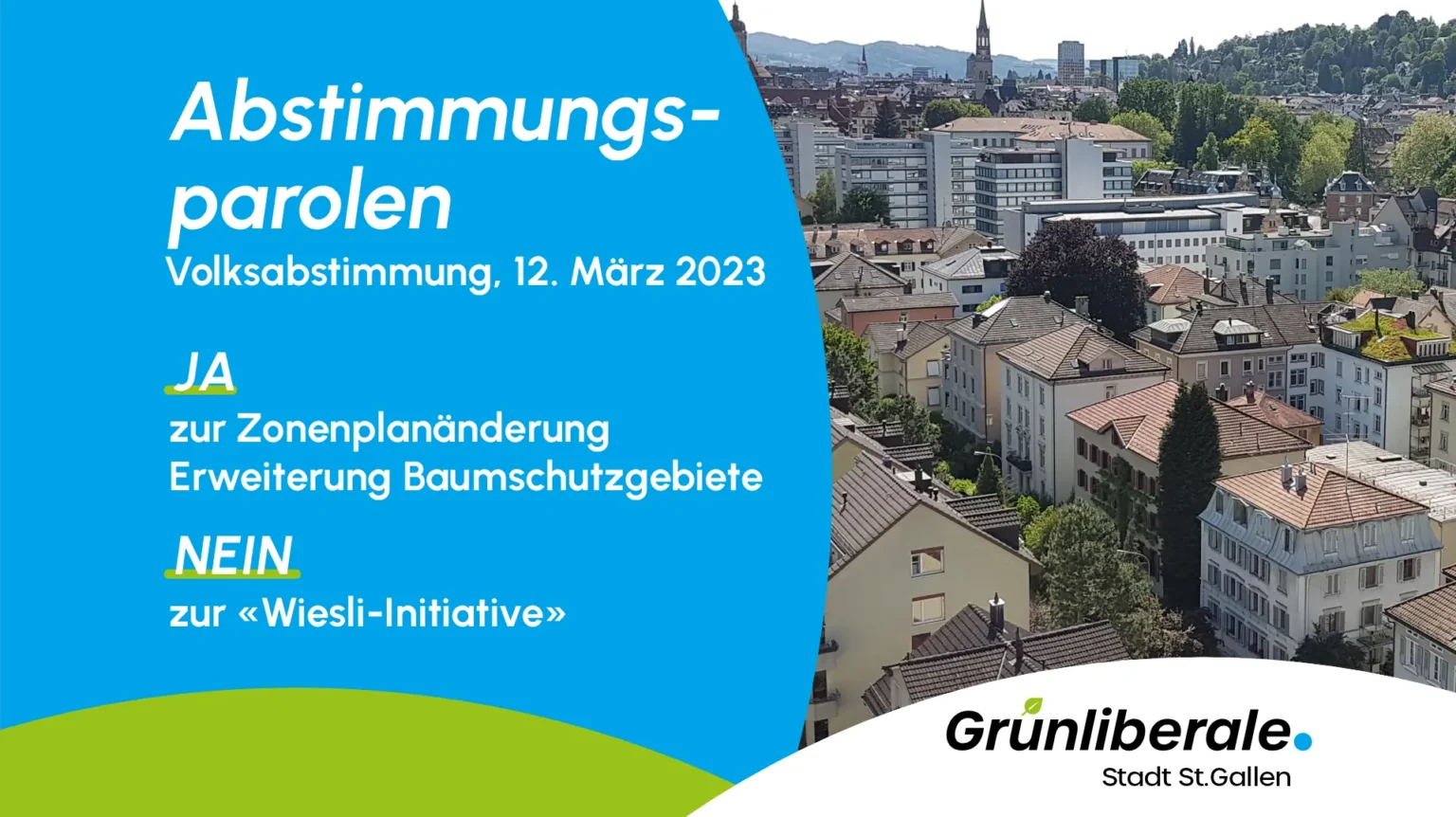 An ihrer Mitgliederversammlung vom 13. Februar sagen die Grünliberalen der Stadt St.Gallen einstimmig Ja zur Erweiterung der Baumschutzgebiete und beschliessen zur «Wiesli-Initiative» die Nein-Parole.