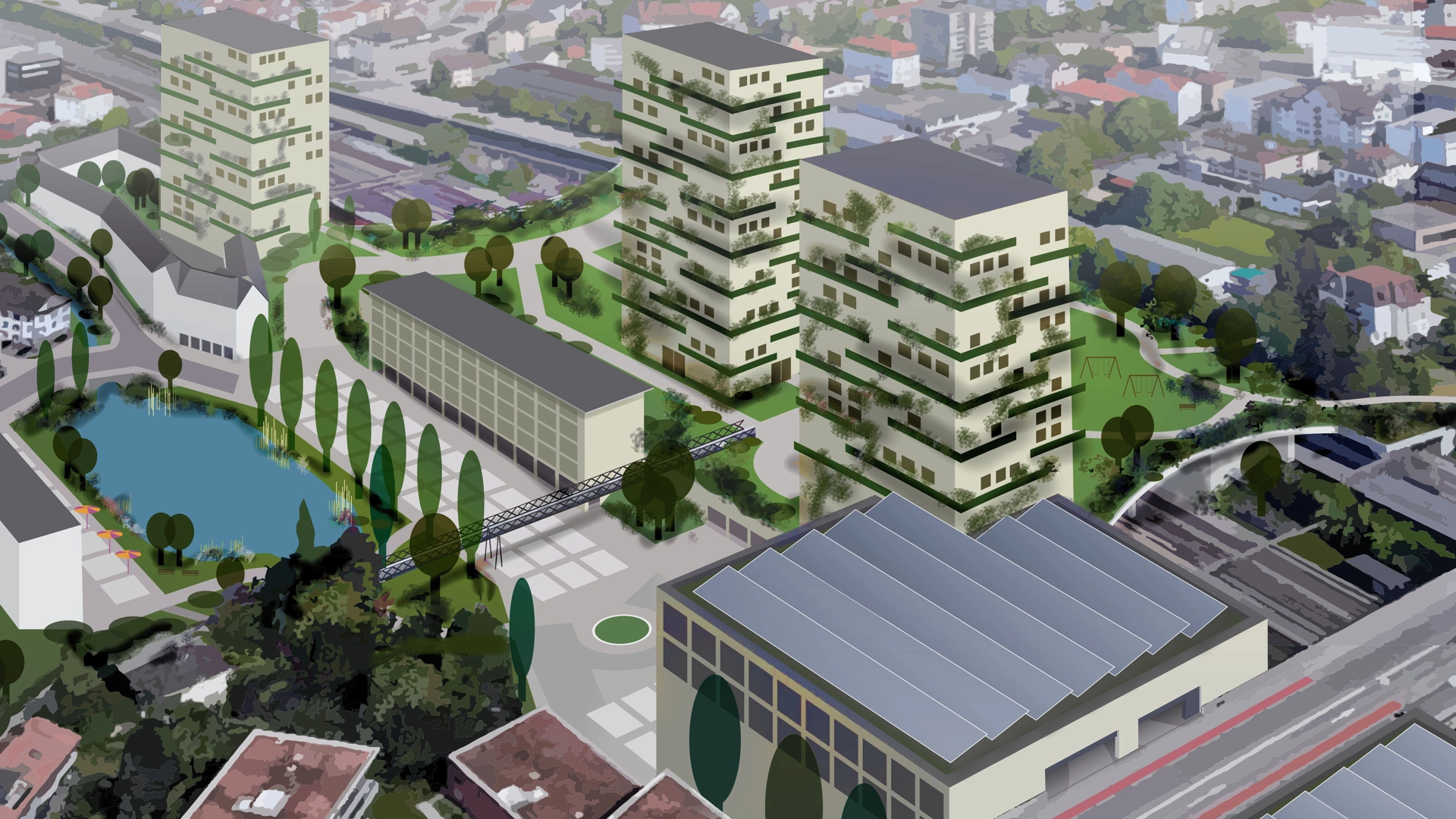 Die Grünliberalen haben sich mit der Nutzung dieses Areals intensiv befasst. Generell soll das Gebiet dicht und energieeffizient überbaut werden bei gleichzeitiger Freihaltung grossflächiger Grünanlagen mit Gewässeroffenlegungen. Das schliesst Hochhäuser nicht aus. Es darf nicht sein, dass hier aufgrund eines schnellen Profits Chancen vertan werden. Im Detail lautet eine der beiden Hauptforderungen der Grünliberalen daher: Bahnhof, Einkaufszentrum und dessen Parkgarage mit Car-Sharing-Standort sind räumlich zu verbinden, im Idealfall bilden sie eine Einheit. Die Erschliessung durch den motorisierten Individualverkehr (MIV) ist so direkt wie möglich von der Autobahn oder der Splügenspange zu gestalten, um ihn von den Wohnquartieren fernhalten zu können. Es versteht sich für die Grünliberalen von selbst, dass neue, direkte Verbindungen für den Langsamverkehr die angrenzenden Quartiere miteinander verbinden sollen.
