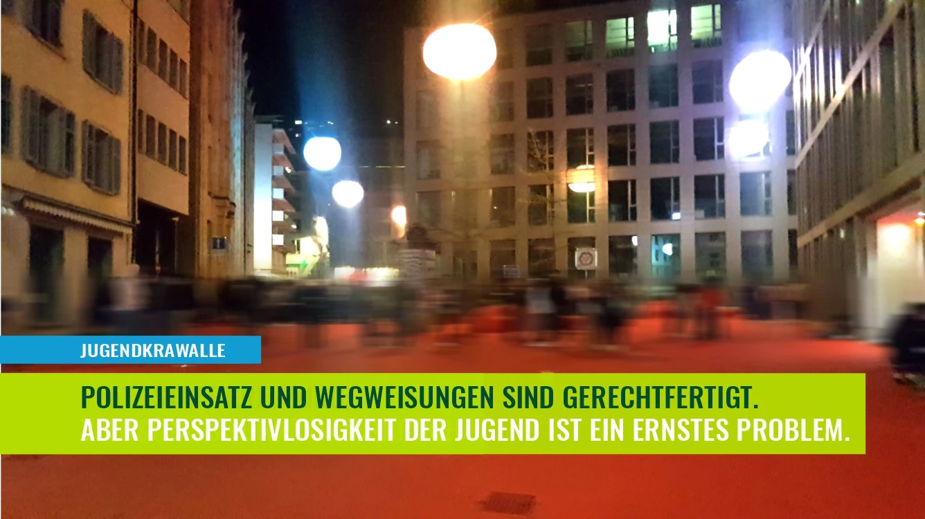 Das Vorgehen der Stadtpolizei erwies sich in den zwei Krawallnächten als verhältnismässig, hat sie doch erst reagiert, als die Situation eskalierte. Zuvor wurden die Jugendlichen weitestgehend toleriert und Nachsicht geübt. Doch die Perspektivlosigkeit im Zusammenhang mit der herrschenden Pandemie ist ein ernst zu nehmendes Problem.