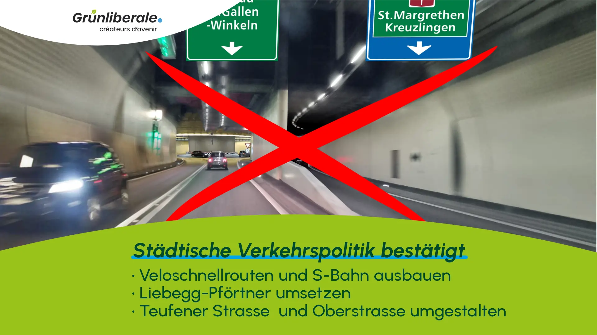 Mit der Ablehnung der eidg. Vorlage zum Ausbau der Nationalstrassen sind auch die Autobahnprojekte in der Stadt St.Gallen versenkt. Da auch die Bevölkerung der Stadt St.Gallen Nein gestimmt hat, wurde die städtische Verkehrspolitik. einmal mehr bestätigt.