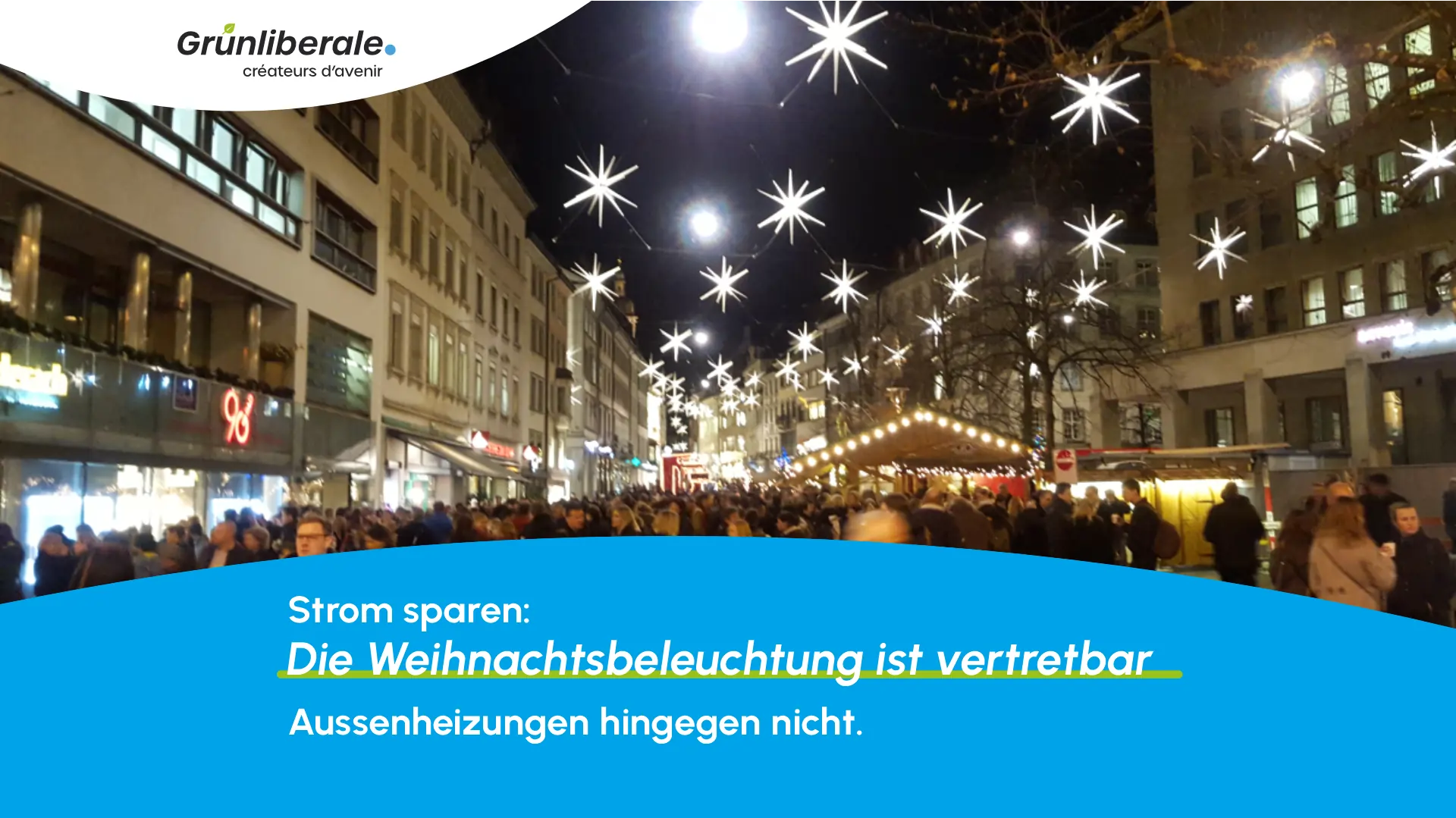 Neben dem stadträtlichen Appell an Gewerbetreibende, denen wir ein möglichst uneingeschränktes Weihnachtsgeschäft wünschen, ist es aus grünliberaler Sicht ebenso wichtig, die gesamte Stadtbevölkerung bezüglich «Stromfresser» zu sensibilisieren. Heizpilze oder andere Aussenraumheizungen sind auch in Zeiten ohne Stromknappheit zu vermeiden.Â