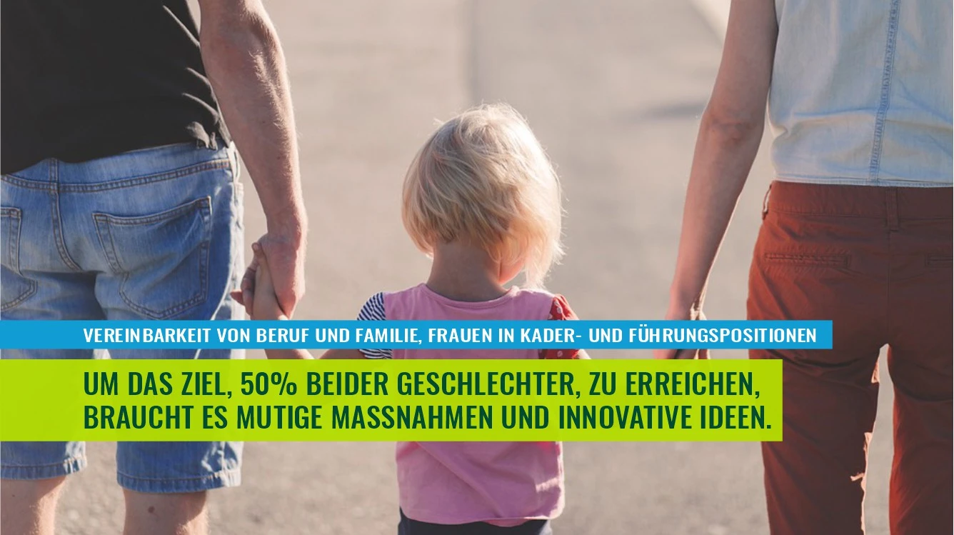 Im Oktober 2019 wurde von diesem Parlament die Motion „Vereinbarkeit von Beruf und Familie, Frauen in Kader- und Führungspositionen“ als erheblich erklärt. Das Ziel ist es, für beide Geschlechter in allen Bereichen 50% in Kader- und Führungspositionen zu erreichen. Teilzeitarbeit und Jobsharing sind zu fördern.
