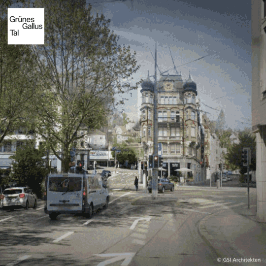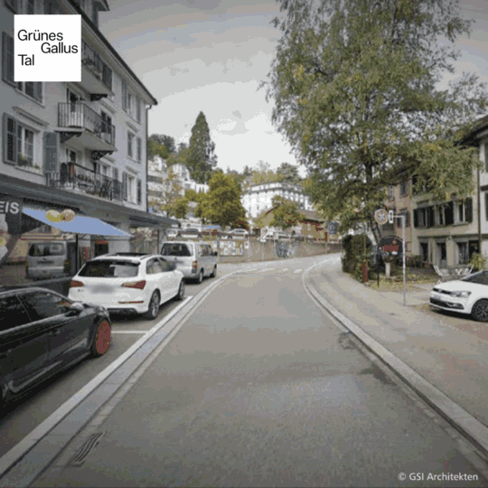 • Zur Bekämpfung des Hitzeinseleffekts sind Baumpflanzungen und Begrünung von zentraler Priorität. Siehe Grünes Gallustal.