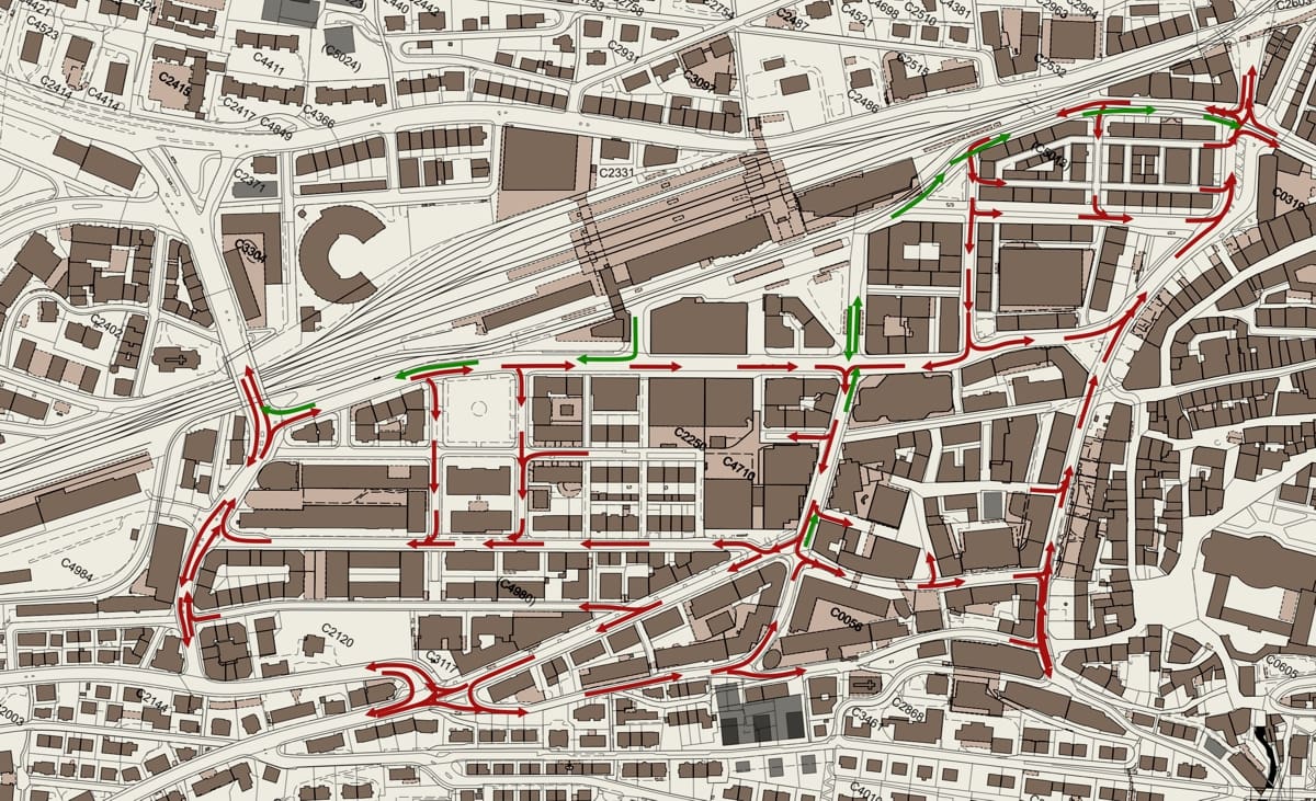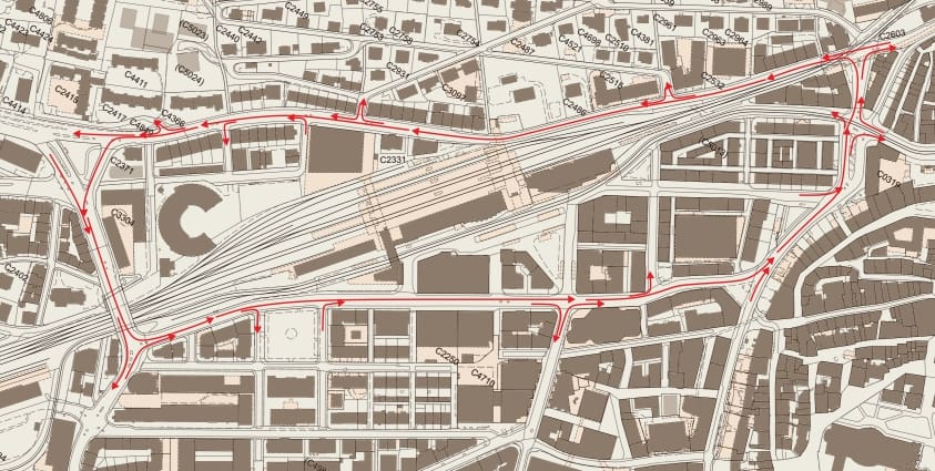 Grosser Innenstadt-Einbahnring um den Hauptbahnhof.